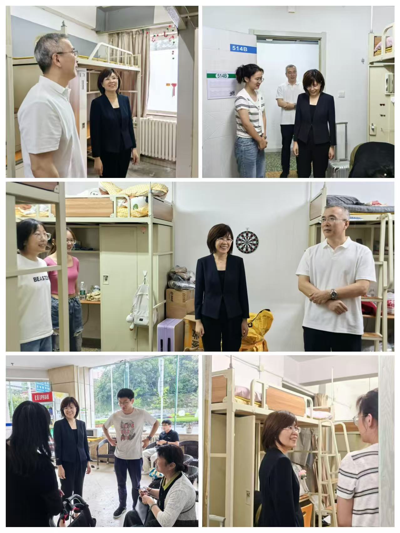 李艳霞副院长、大医一院教育教学部部长周广民一行还前往白云宿舍区,实地察看新生宿舍入住情况,并与新生及家长亲切交流,深入了解同学们的学习经历、专业背景及入住适应状况,勉励大家站在新起点,要坚守从医初心、勇担时代使命,持续追求卓越、刻苦钻研,力争在医学道路上不断攀登学术高峰,努力成长为有理想、有本领、有担当的医疗卫生人才。