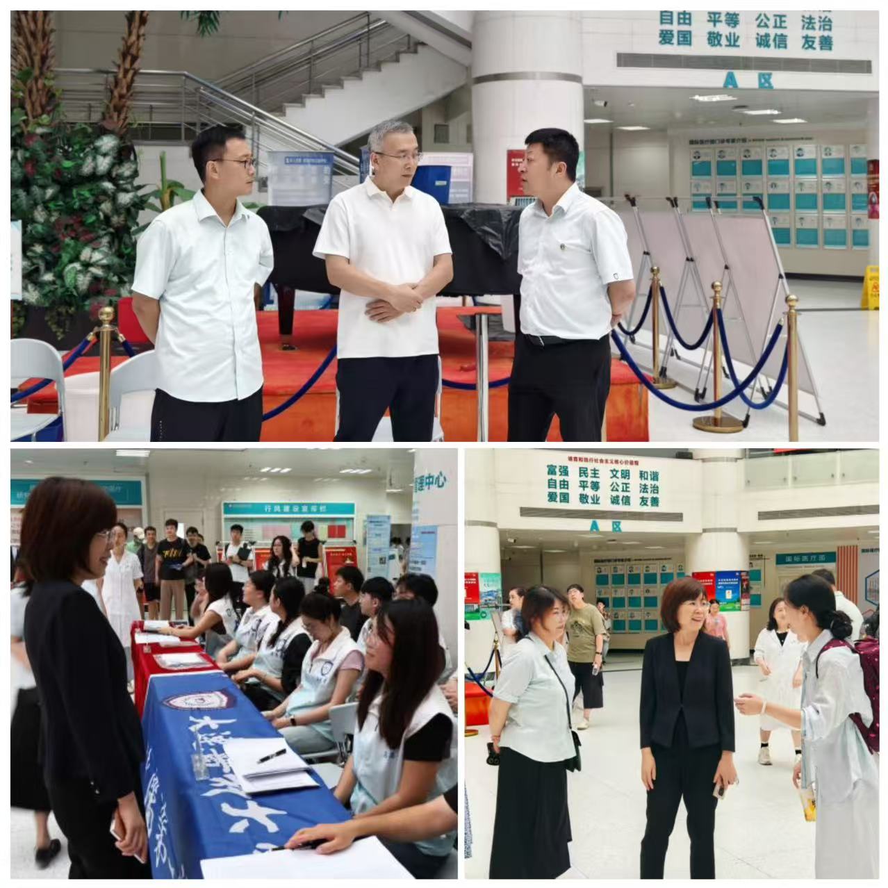 迎新当日上午,大医一院党委副书记马灵斐、副院长李艳霞到现场检查指导各项工作,看望前来报到的研究生新生,并慰问一线参与迎新的师生员工。李艳霞副院长详细了解了报到流程和服务保障情况,叮嘱工作人员要坚持以人为本,做到热情周到、便捷高效。