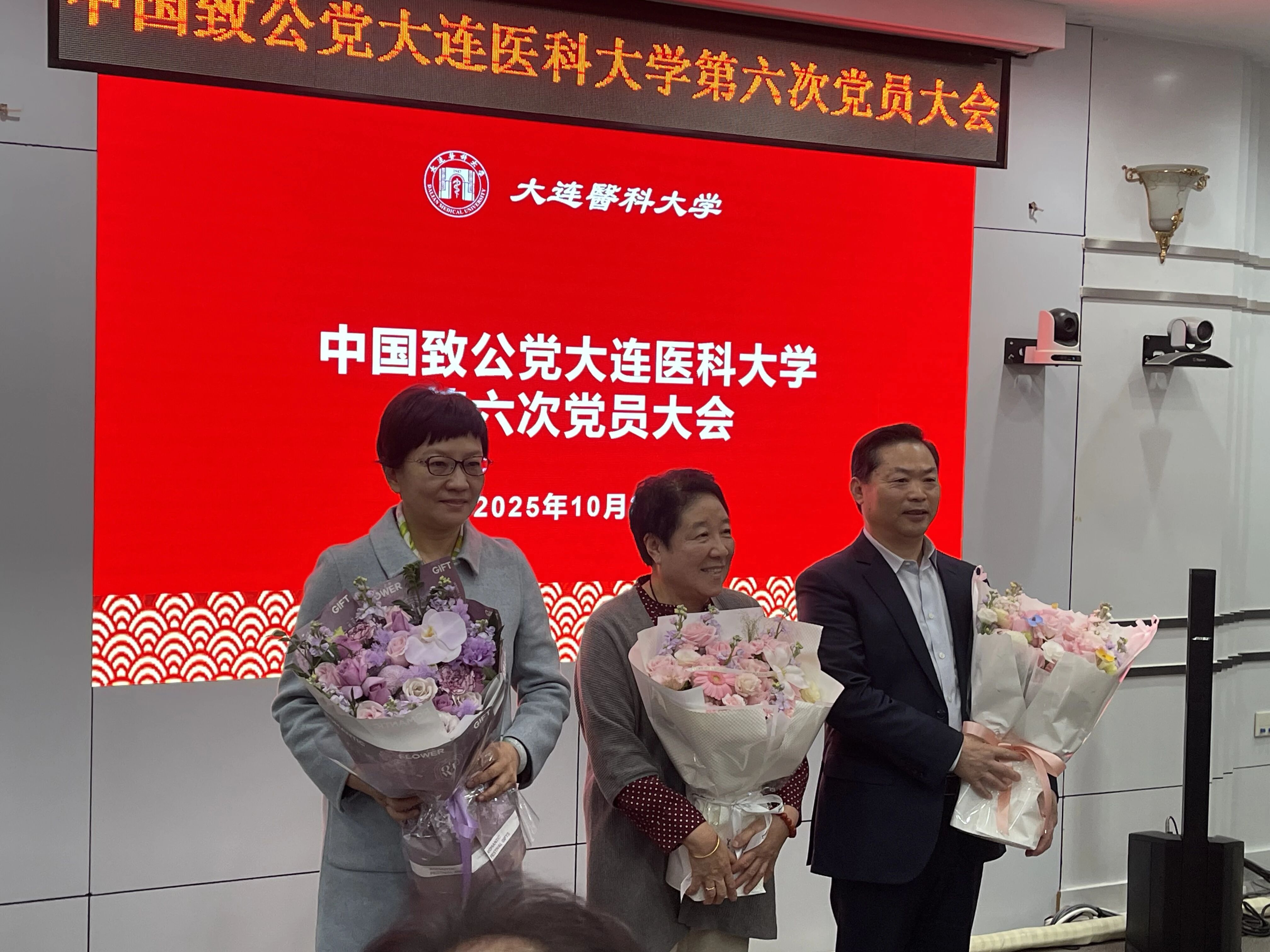 李楠代表大连医科大学第六届支部委员会向上一届支部委员会致敬,向参会的历届领导班子成员献花,并表示,一定团结带领全体党员加强政治理论学习,深入学习习近平总书记关于新时代参政党建设的重要论述,始终在思想上政治上行动上同以习近平同志为核心的中共中央保持高度一致;不断提高履职能力,尽快适应职能定位要求,围绕新目标、新任务,坚持自觉学习科学理论,更好地履行参政议政、民主监督的职能;继承发扬优良传统,牢固树立优良传统的传承意识,真正做到政治方向不变、理想信念不改、优良传统不丢,推动多党合作事业薪火相传;勇于奉献担当,立足专业优势,服务学校发展,在重大疾病防治、医工交叉等领域联合攻关,推动成果转化,服务社会民生。
