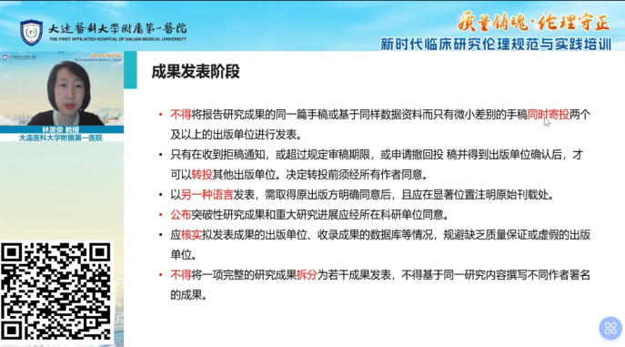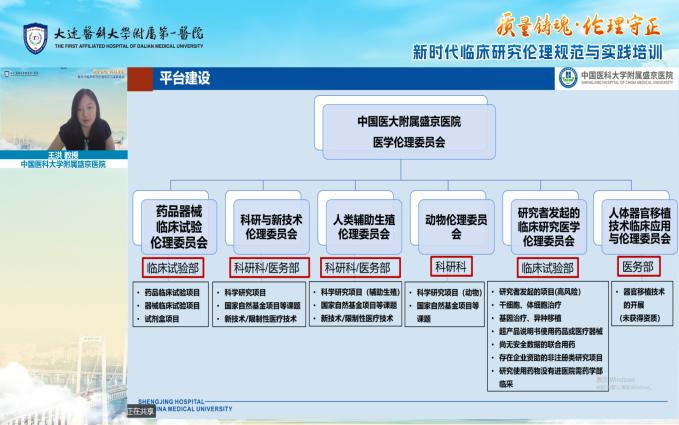 最后,中国医科大学附属盛京医院伦理办公室王洪主任介绍了伦理审查信息化系统,为落实科研全程信息化、可追溯管理提供了技术指导。