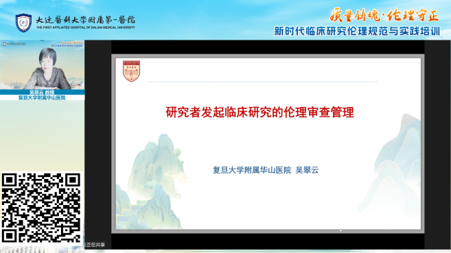 复旦大学附属华山医院伦理办公室主任吴翠云教授深入讲解了《研究者发起临床研究的伦理审查管理》,剖析了IIT研究的特殊性及其全流程伦理监管要点,围绕超适应症研究、《科技伦理审查办法(试行)》复核审查清单中研究、人遗管理常见问题、非药品注册类干细胞临床研究等具有新时代研究特色的高新研究进行了细致讲解,并对《条例》中部分条款进行了解读,为临床研究进行分类化、精细化管理提供了专业思路。