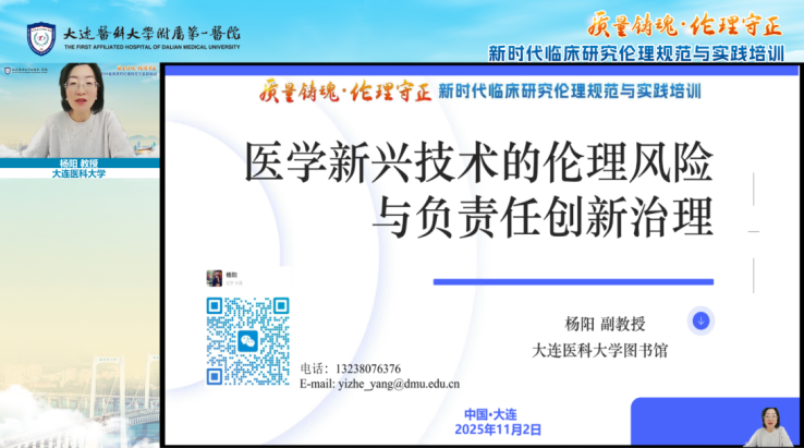 围绕前沿技术伦理治理,大连干细胞与精准医学创新研究院邹伟教授在《干细胞临床研究的伦理思考》中,探讨了如何在鼓励创新的同时,通过严格伦理评估管控风险;大连医科大学图书馆副馆长杨阳教授则在《医学新兴技术的伦理风险及负责任创新治理》中,从宏观层面提出“负责任创新”理念,与《条例》的风险防范导向高度契合。