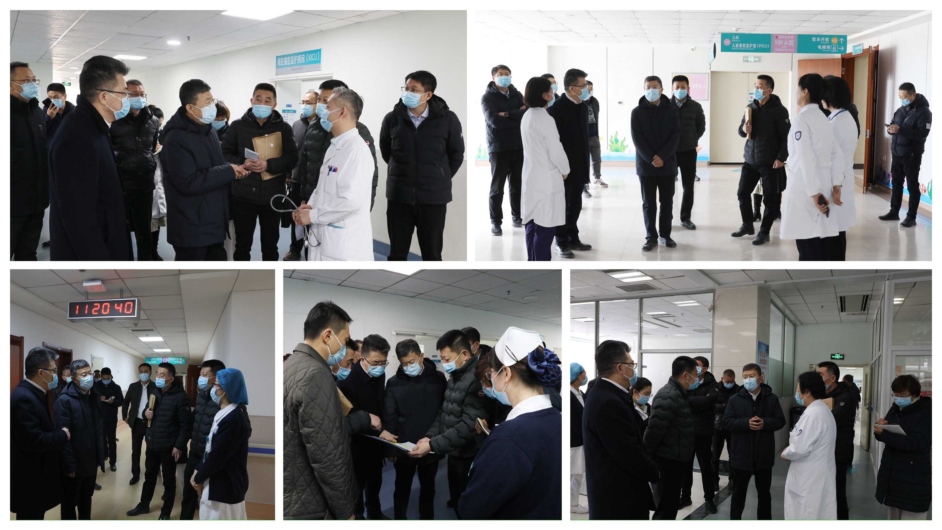 李海洋一行先后到附属第一医院金普院区急诊、病房、健康管理中心、学生宿舍、在建工程等区域查看安全生产情况,并在联合路院区大会议室听取了金普院区(金普新区医疗中心)建设及运营情况汇报。