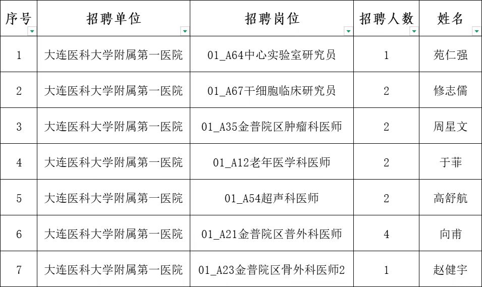 经报名、资格审查、考核,大连医科大学附属第一医院2025年公开招聘高层次人才第五批体检人员已确定,现将名单公布如下: