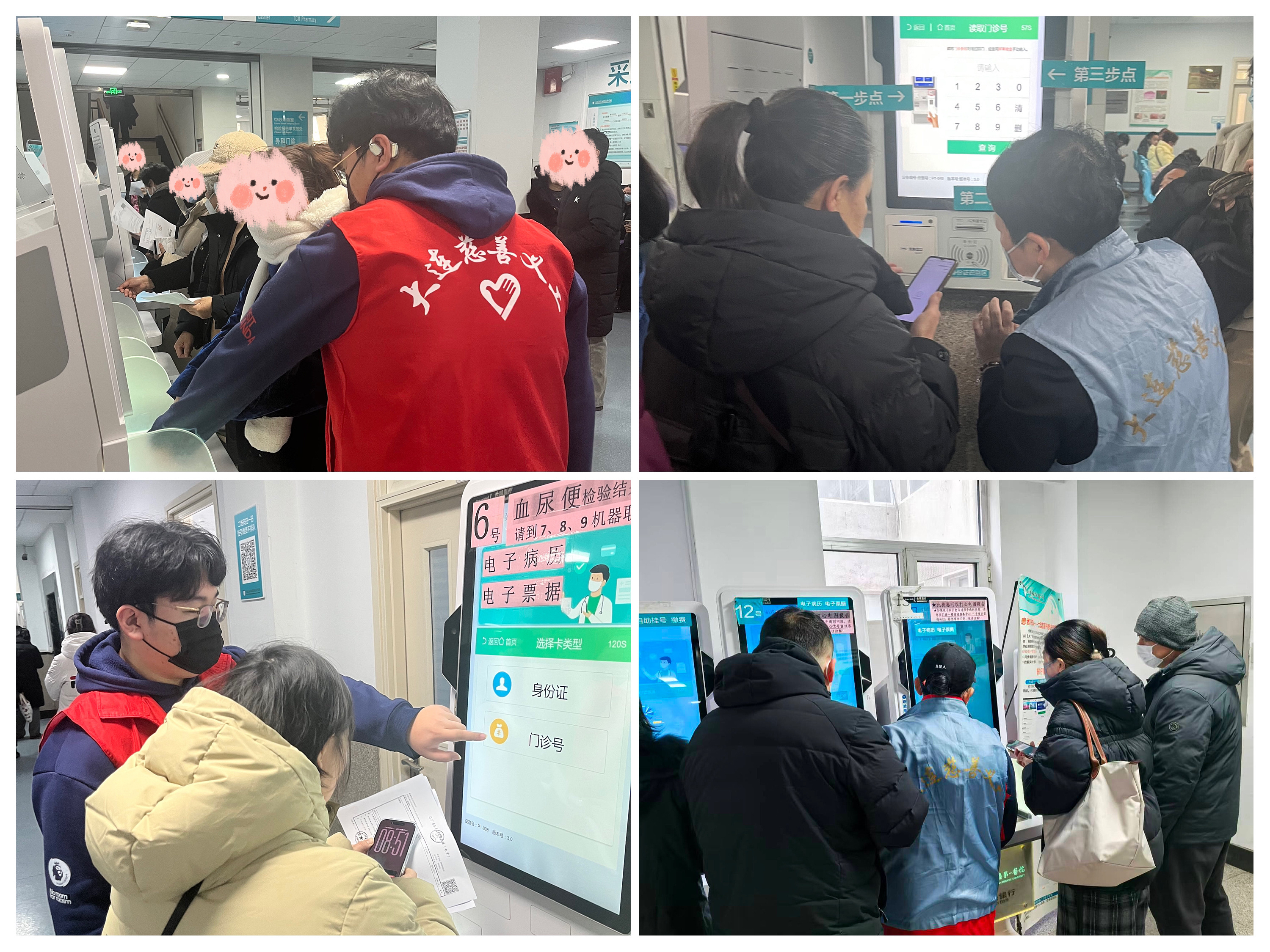 如今,在医院门诊大厅、分诊台、收款区等区域,总能看到身穿义工服装的温暖身影。他们耐心协助患者及家属完成就诊签到、自助缴费等,手把手帮助老年患者操作自助机;主动维护候诊秩序,用真诚的笑容与细致的关怀,缓解了不少患者候诊时的焦虑与不安。