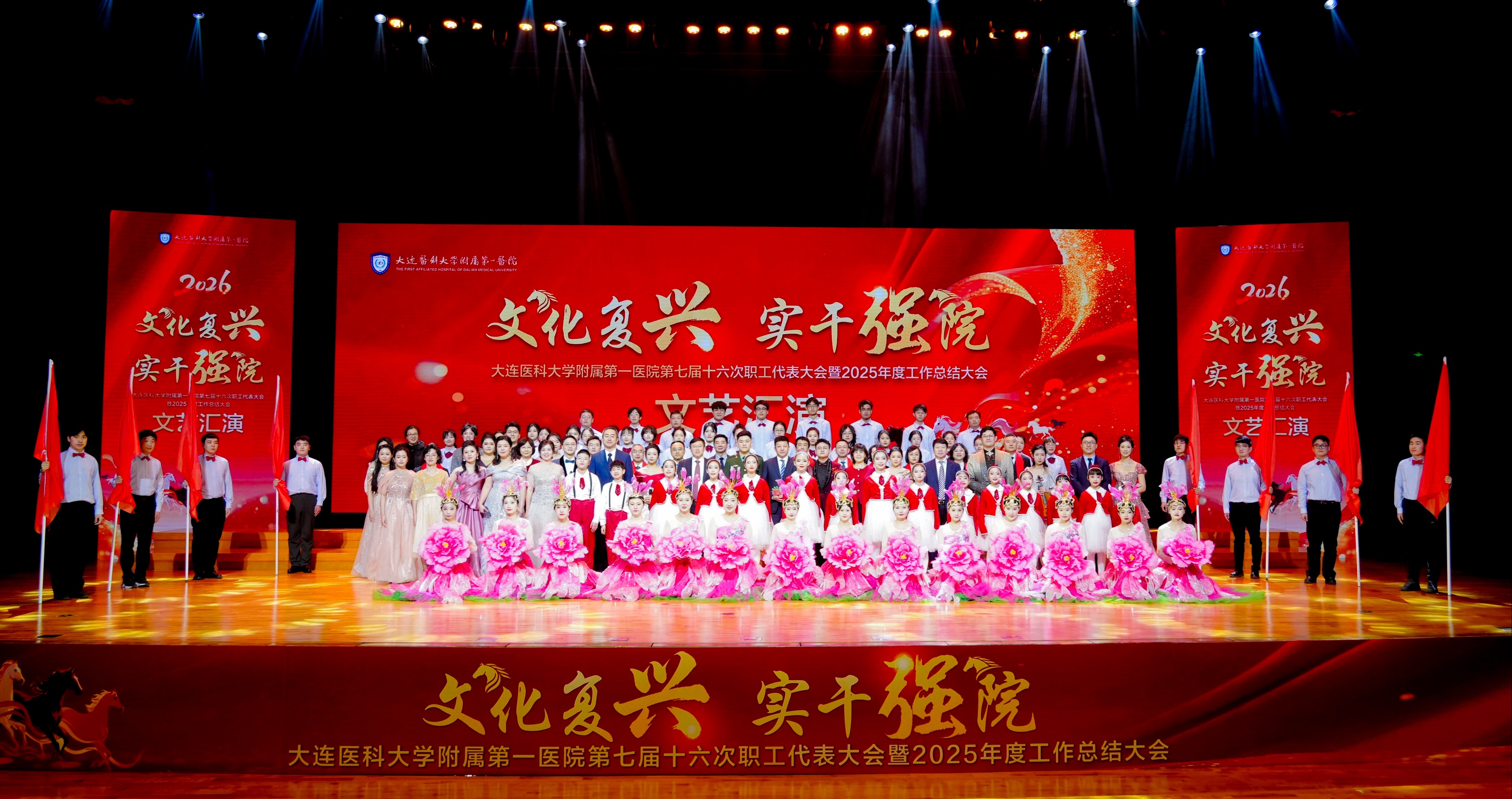 在热烈的掌声中,大医一院第七届十六次职工代表大会暨2025年度工作总结大会圆满落下帷幕。随后,文艺汇演在舞蹈《春暖附一》中拉开帷幕。院领导班子集体登台演唱《真心英雄》,以铿锵昂扬的歌声致敬每一位在平凡岗位上默默奉献的医务工作者,展现了医院上下同心、共筑梦想的凝聚力和守护健康的坚实担当。