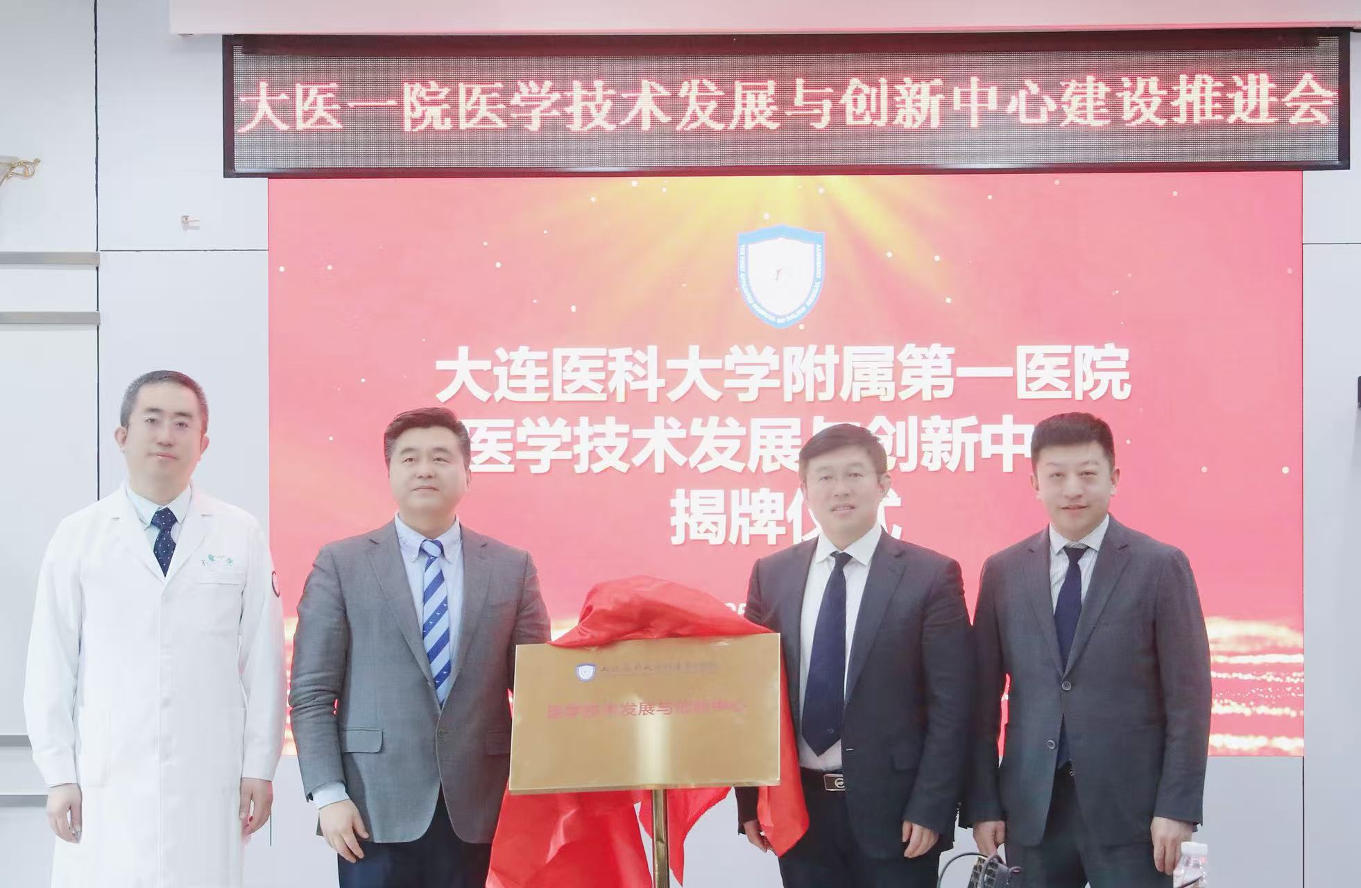 随后,韩鸿宾、夏云龙、马灵斐、杨超共同为医学技术发展与研究中心揭牌。