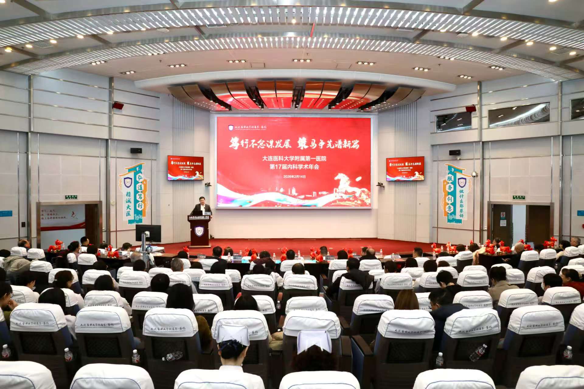 内科党总支书记林洪丽作内科党总支工作回顾,她表示,医院年终总结提出的文化复兴、实干强院,鼓舞内科医护人员积极应对变革和挑战,在医院的平台托举下,建设高水平学科平台,形成更好的团队文化和科室生态。内科学教研室主任卢书明介绍了内科发展历程,感恩傅永潜、柯若仪、雷振之、李昌臣等老前辈作出的卓越贡献,同时梳理了2025年大内科在“医、教、研”和学科建设、人才培养等方面取得的突出成绩,对2026年工作进行展望。开幕式由内科学教研室副主任吕海辰主持。