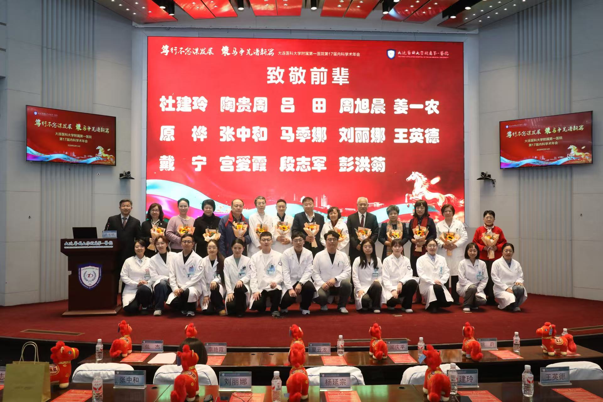 会上,李艳霞带领内科学教研室主任、副主任、各三级学科及亚专科主任、副主任和护士长等,向各位老专家及内科全体医护人员集体拜年,祝福大家新年快乐、万事如意、马年大吉、阖家欢乐!